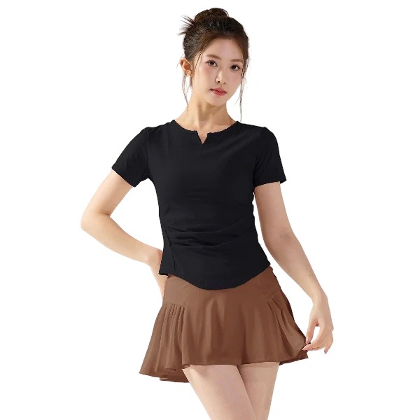 – Tên sản phẩm: Áo Thun Tập Gym Yoga Aerobic Nữ Nhún Eo Tay Ngắn Cổ Tim Vải Poly Lạnh 4 Chiều Cao Cấp Co Giãn Thoáng Mát Yolo Sport