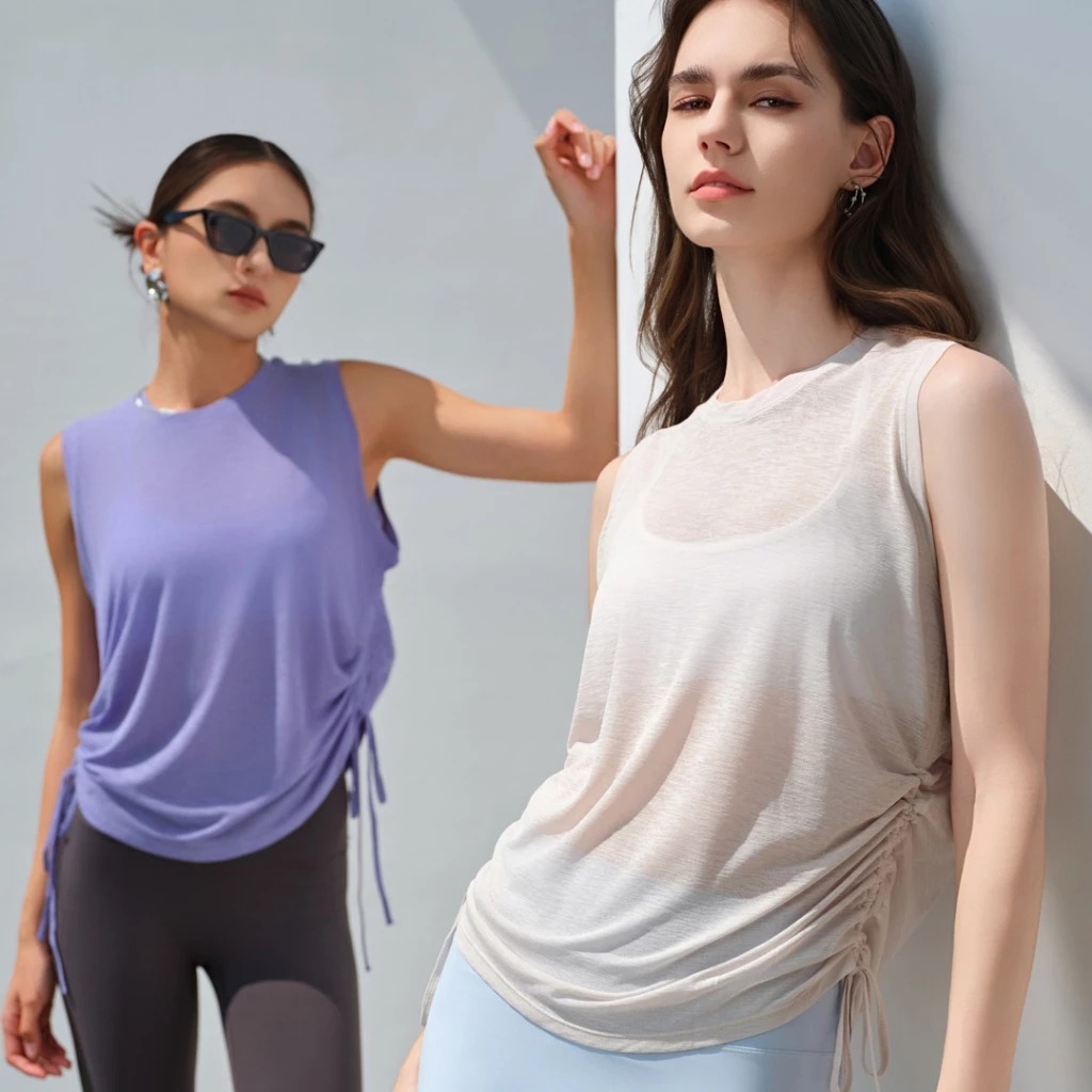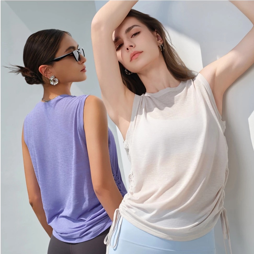 – Tên sản phẩm: Áo Tanktop Ba Lỗ Tập Gym Yoga Nữ Tank Top Croptop Thun Lụa Rút Dây Hông Cá Tính Vải Thun Mỏng Thoáng Mát YOLO SPORT
